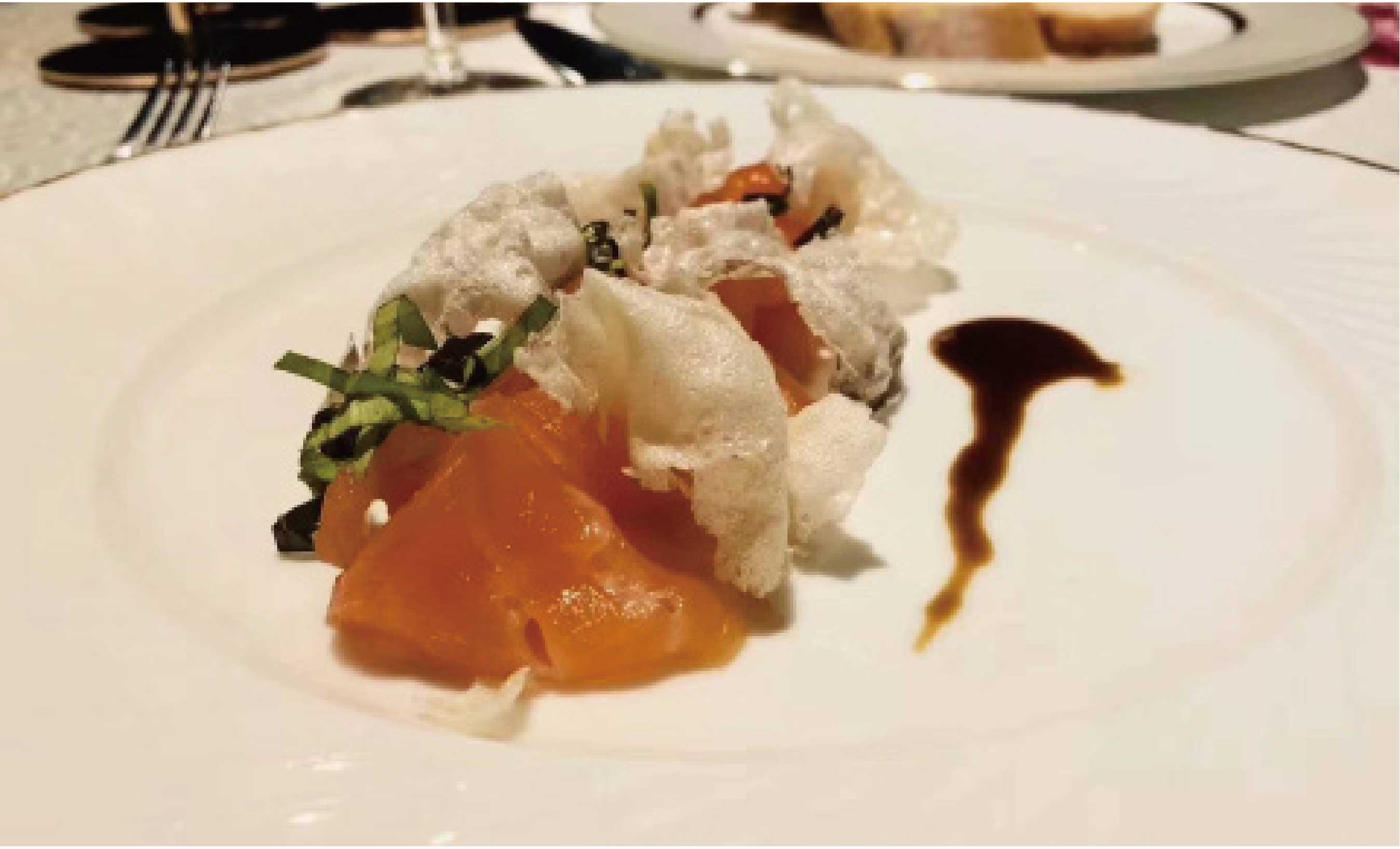 武汉小吃你会用法餐如何演绎?一年之后,余磊说现在比较成熟的方案是“豆皮”,他走访了一些老师傅,对豆皮的原材料进行再次溯源,找到了最合适的基础材料和烹制方式,“比方说如何蒸制口感绝佳的糯米和如何在蒸制糯米时增加风味,以及如何让出品的金色外皮一直保持酥脆。”
