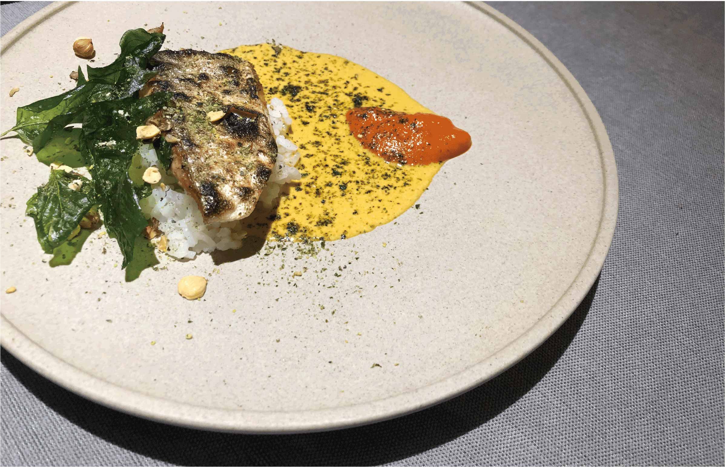 “小莲蓬也是很有特色的食材,清鸡汤微煮后,搭配黄油煎鳜鱼,很有鱼米之乡的特色。很有意思的一点是,荷花的全身都很搭淡水鱼虾,有一种生死相依的感觉。”
