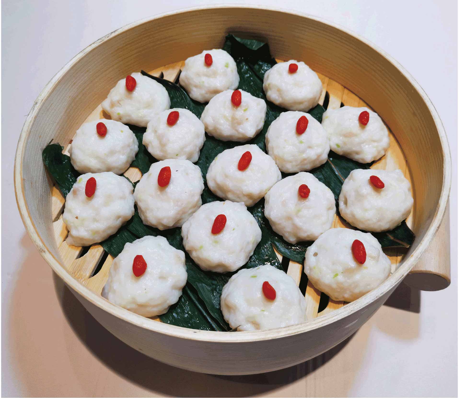 在余磊的厨房,武汉的荷叶可以作为盐焗鱼的包裹层,荷花瓣可以做香肠的外衣,荷花芯可以做汤品也可以做甜点,藕切片酥炸后可以做沙拉,藕带可以做夏洛特型的围边。荷花瓣做的酥香鱼包是喜欢吃鱼的客人非常喜欢的一道菜。鱼肉和虾肉打碎成肉糜,调味后用盐渍荷花瓣包裹成荷包,扎紧定形,再用猪网油包裹,小火慢煎。